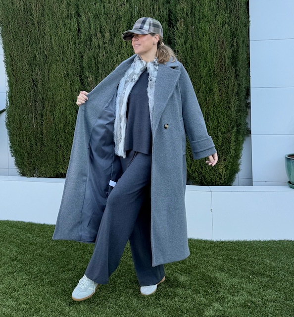 Abrigo maravilloso, de manga larga y forro interior al tono. Solapas grandes y cerrado de diseño cruzado. Largo; de pañete especial suavidad y que no pesanada.